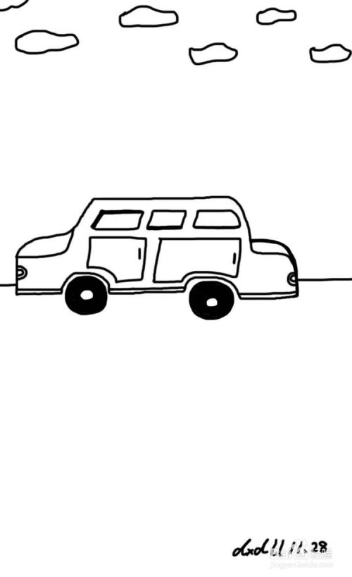 首先打开平板电脑绘图软件,电容笔选择黑色画笔,画出车身。我们在车身下方画出一个内侧轮廓线。
