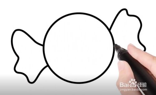 在圆的左右两侧画糖果纸,如下图。