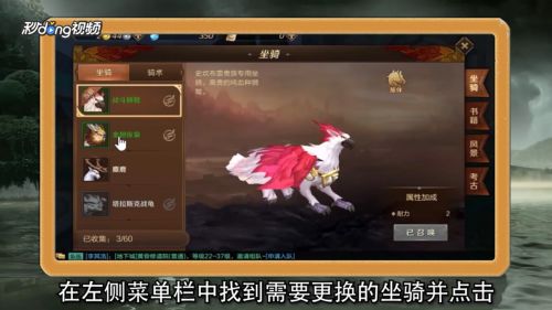 5在左侧菜单栏中找到需要更换的坐骑并点击。