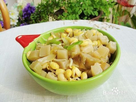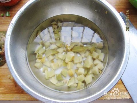 榨菜洗净,切成方丁,用水泡洗至淡味