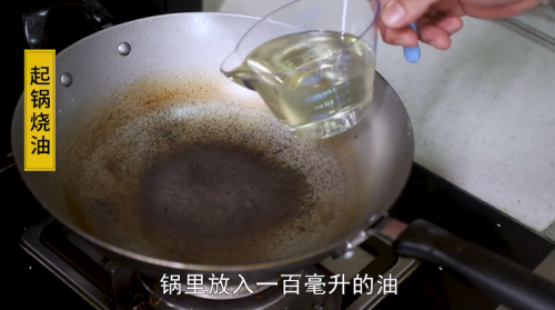 锅里放入一百毫升的油,油温烧到七成热即可。
