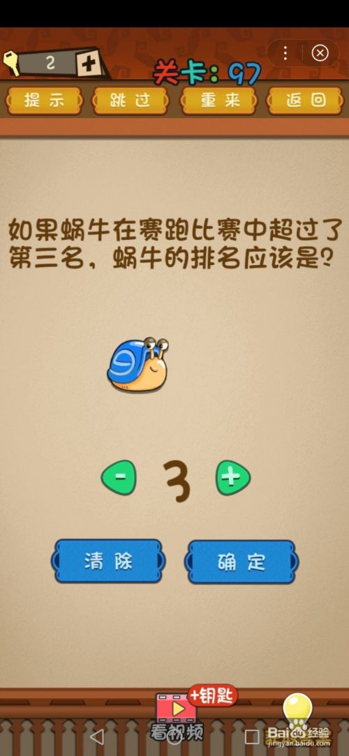 第97关答案是第三名,将数字调成3,然后点击确定就过关了。