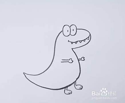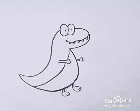 画出小恐龙大大的眼睛,长长的嘴巴,还有锋利的牙齿。
