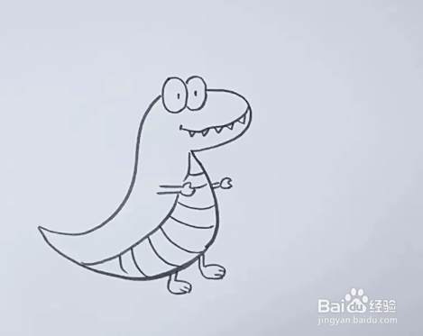 接着画出小恐龙圆滚滚的肚子和尖尖的尾巴。