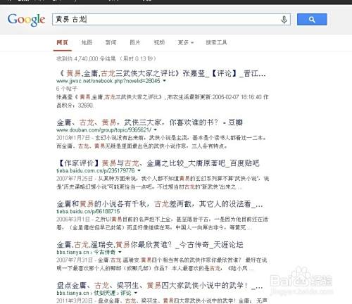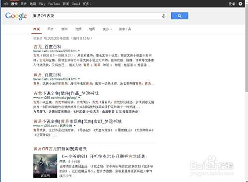 当你搜索黄易 古龙这两个关键词时,出来的不光是这两个人,还有金庸。但用了OR 搜索的结果只有他们。