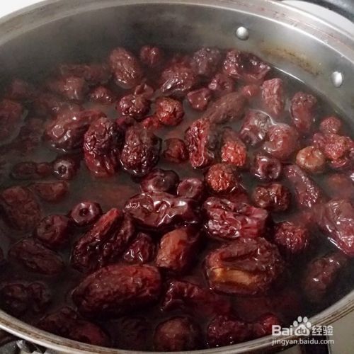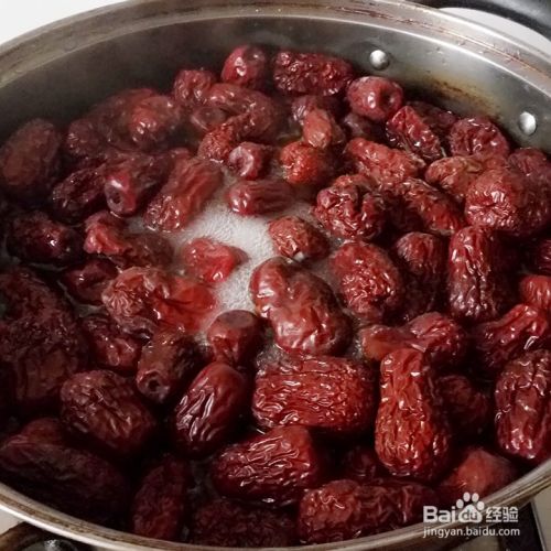 中火煮至用手捏一下大枣,枣皮可以扒下来。
