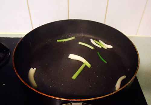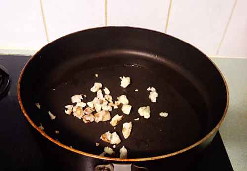 2烧热锅,倒入适量橄榄油放入沙姜。