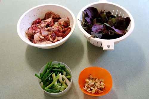 1食材:切块的鸭肉、紫苏、沙姜、葱段。