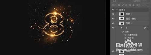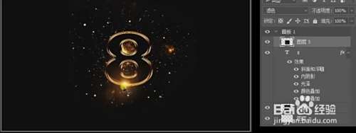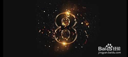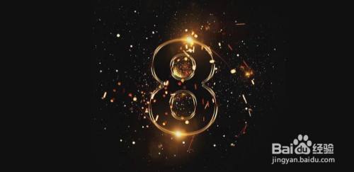 【拖入】准备好的素材,并放置画面正中。选择【文字工具】,选择合适的字体,【颜色】白色,输入数字8,按【Ctrl+T】自由变换,并放置画面正中。具体效果如图示。
