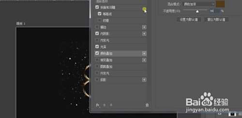 选择【光泽】,【光泽颜色】R107G99B66,其他具体参数如图示。