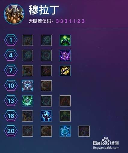 穆拉丁这个英雄的出场率一直不低,毕竟这个英雄够全面,不容易死但是又有伤害,而且还不容易被针对,具体天赋介绍如下: