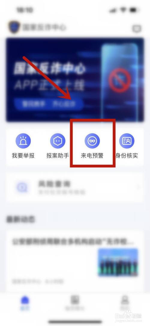 在国家反诈中心首页,点击一下页面的来电预警选项。