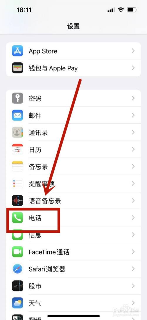 进入手机设置,选择一下电话功能。