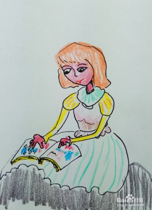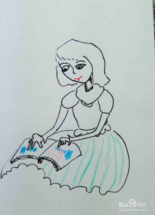 最后用水彩笔涂出小女孩儿的衣服色彩,皮肤色彩,修饰一下细节,漂亮的简笔画就画好了,大家也可以按照自己的喜好画出自己喜欢的人物。