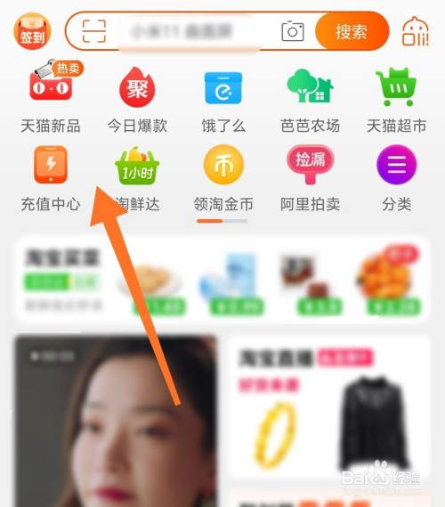 打开手机淘宝,然后点击充值中心;