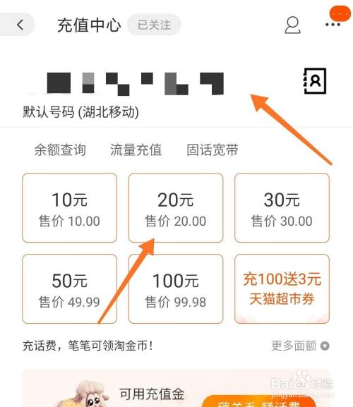 进入充值中心,我们选择号码,选择金额;