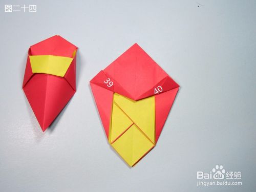 第25步、将图二十四中的39与40两部分,分别沿着折痕向内翻折,得到图二十五。
