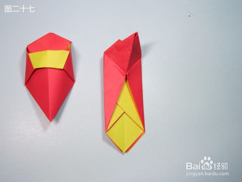 第23步、将图二十二中的边31撑开,再将角27与角28翻折至内侧,得到图二十三。