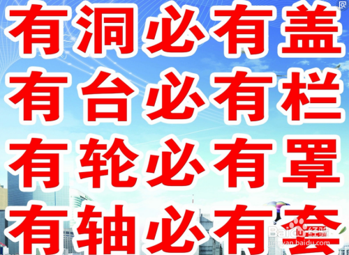 6综合安全措施:有坑有盖、有台有栏、有轮有罩、有轴有套、有危险有提示警示。END