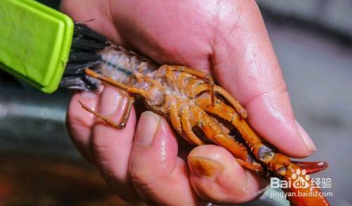 用专用的刷子(不用使用洗衣服的刷子,因为洗衣粉是有毒的)或钢丝球刷洗龙虾全身。特别是腹部,刷洗到能清晰看到虾线和泛白的腹部。