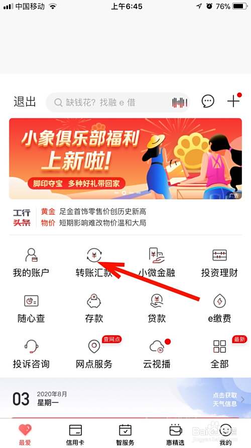 使用软件:工行手机银行