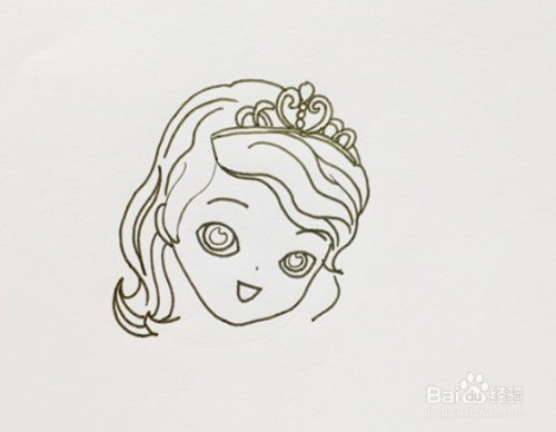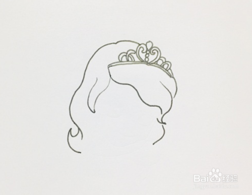 首先我们画出苏菲亚卷卷的头发,刘海是斜分的,头上还带了一个王冠发箍。