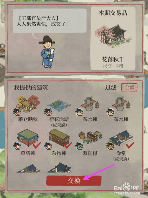进入严大人的本期交易品页面,提供一些娱乐建筑交换“花落秋千”;