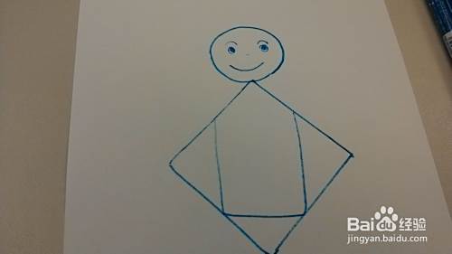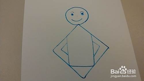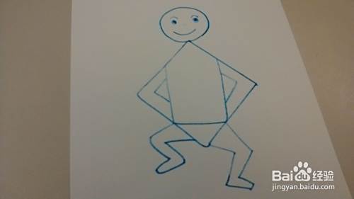 在左右两侧的三角内再画一个三角,这样插着腰的双手就出来了。