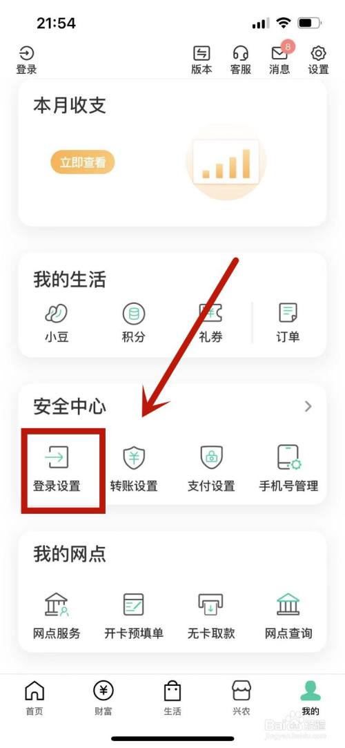 在中国农业银行我的界面,选择一下登录设置选项。