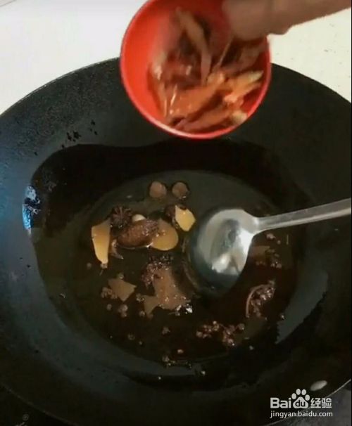 干辣椒,葱姜,下火锅底料,炒香,再放入生抽,白糖,鸡精,再放入老汤。