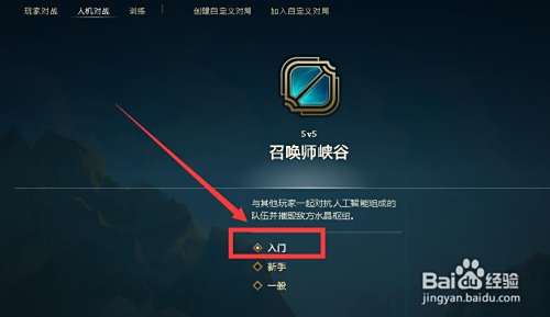 第三步,进入预选阶段后,选择入门难度的人机模式
