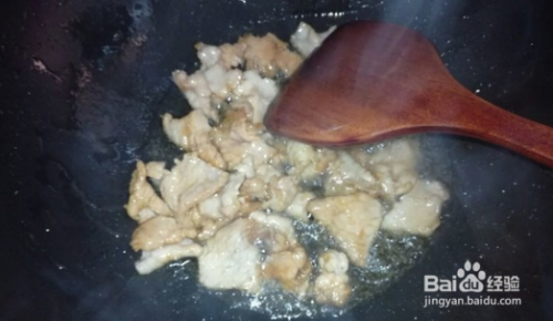 锅中倒油,油热下入肉片翻炒,加入十三香。