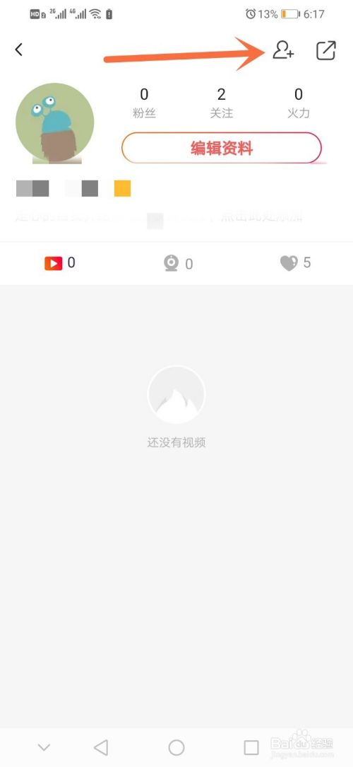 接着在个人主页位置点击左上角,箭头所指的这个小人图标。
