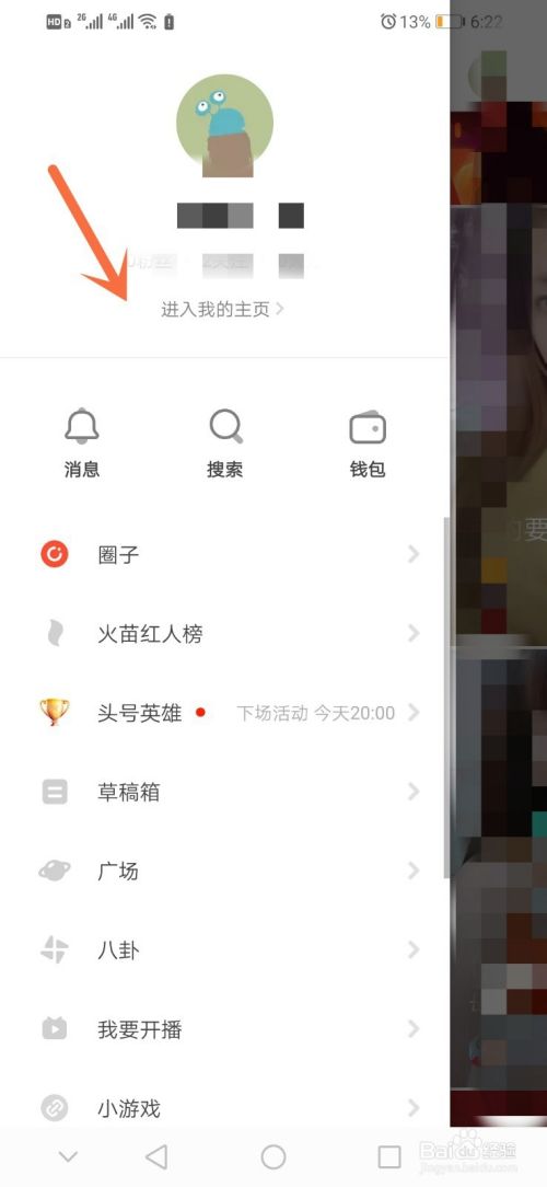然后左侧会弹出一个窗口,我们依然点击个人头像位置,有一个“进入我的主页”提示。
