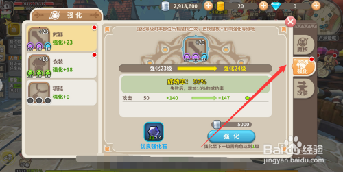 点击界面右边的选项【装备】,可以更换装备,强化装备等操作。