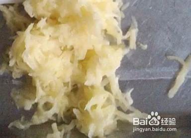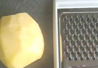 将土豆去皮洗干净用刨丝器的细孔刨成丝。