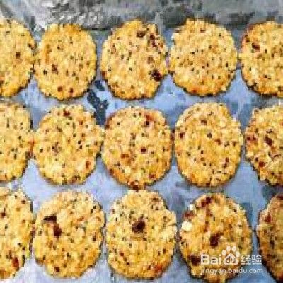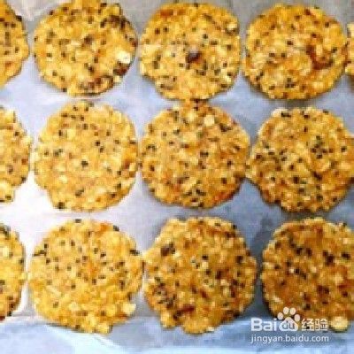放入烤箱,烤箱开上管120°8分钟左右,以表面变金黄色关烤箱为准。拿出来后利用烤盘余温把饼干中的水分烘干。