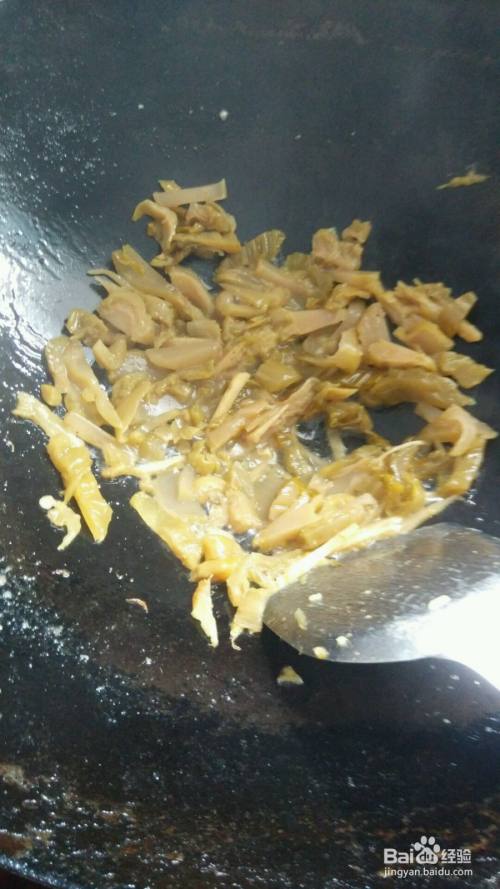 锅里放油,抄酸菜。炒出香味就加水