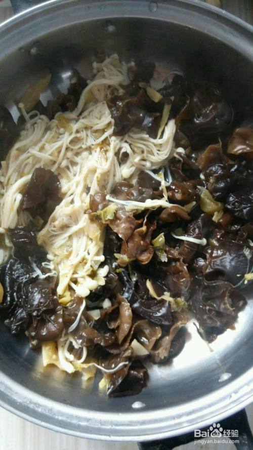 捞起来的金针菇木耳放在锅底,或者大大大大碗里。