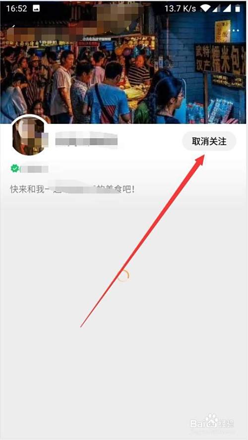 第5步进入该用户界面之后,点击如图所示的取消关注按钮就可以完成取消。