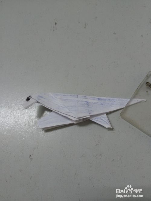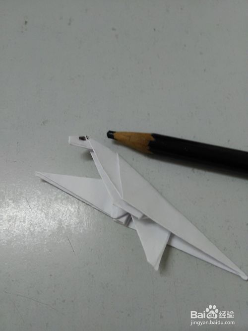 最后,把左下角向上折进去一个小角,当作它的鳍,这个恐龙就折好了。
