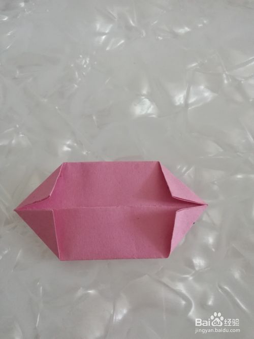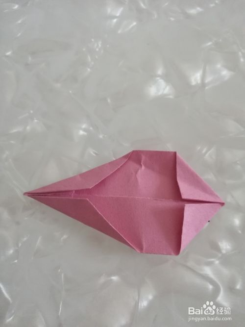 折好之后将两个尖角中间部分向内部折叠,这样就形成如图所示形态,中间部分折叠在内部,就没有了突出来的这一部分。