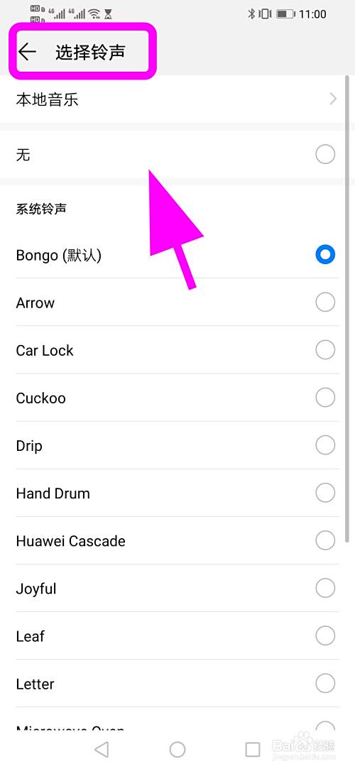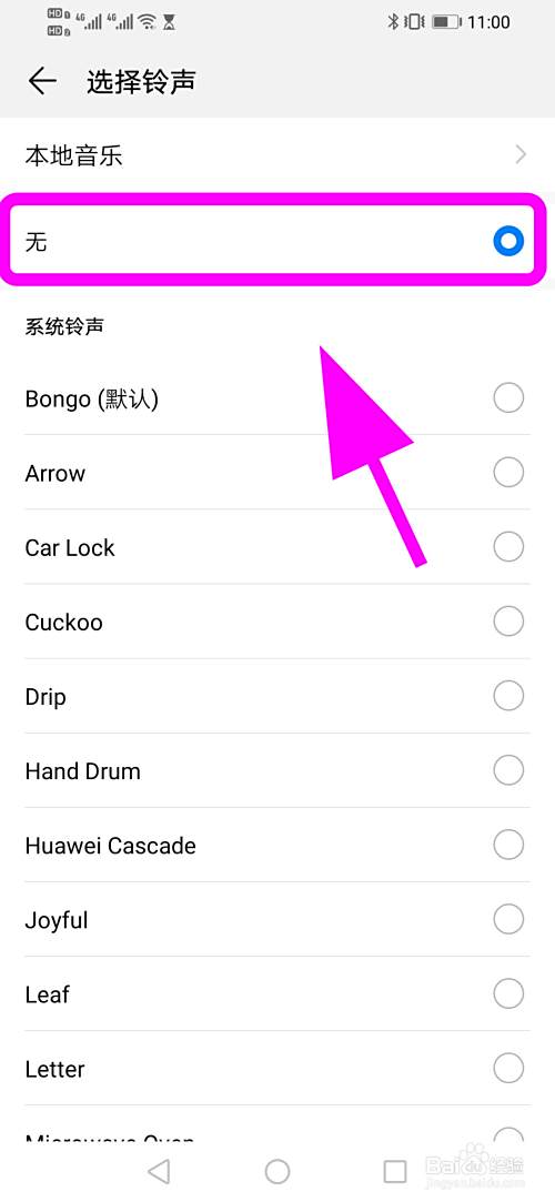 在铃声中,找到并点击【无】,完成,这样就解决了华为手机莫名叮咚响的问题;