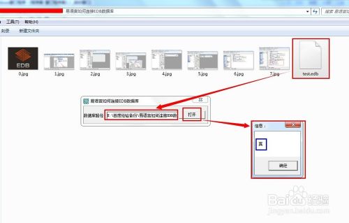 代码编写完毕,调试程序不能少。果断猛戳“F5“键,将事先准备好的test.edb文件拖拽到编辑框中,然后打开。查看信息框弹出的结果数据。如图: