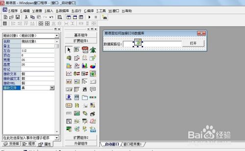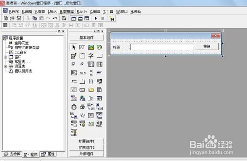 然后,在“Windows窗口”设计界面,绘制标签组件、编辑框组件、拖放对象及按钮组件各一个,并调整各个组件的位置,以便使窗口界面看着协调。