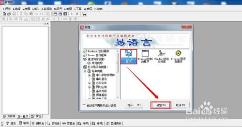 易语言既然要连接EDB数据库,那么就必须要准备好一个EDB数据库,以供调用。笔者在这里带大家一起重温一下易语言如何创建EDB数据库吧!首先,打开“易语言”主程序,在弹出的“新建”窗口中,选择“Windows窗口程序”,而后点击“确定”按钮,进入“Windows窗口程序”设计界面。如图: