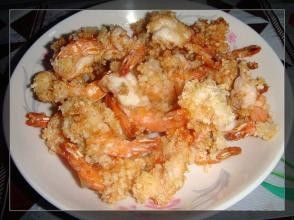 起锅倒入油,加热7成热时,放入挂浆的虾仁,炸至外表焦黄色,捞出沥油。
