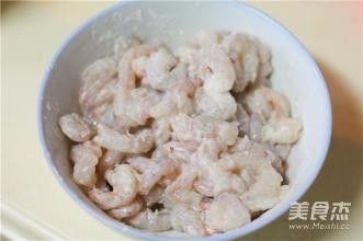 鸡蛋清、淀粉、花椒粉放在一个碗中调制均匀,放人虾仁挂上浆。