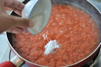锅内留油,放入西红柿酱,加入白糖翻炒加下,加入虾仁翻炒几下可装盘。