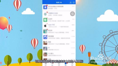 打开进入支付宝主页面,点击底部的消息图标,切换到消息页面之后点击右上角的人像图标。